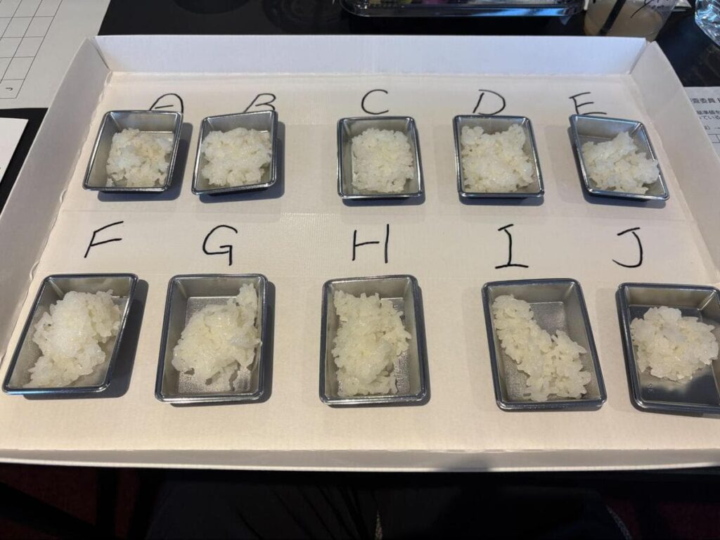 棚田米は一口サイズに取り分けられていましたが、しっかりと食べ比べできるように少量ずつ口に含んでいきます。また、アルファベット順に食べると最初と最後が印象に残りやすい気がしたので、食べる順番もランダムにしてみるなど、自分なりに工夫をしてみました。