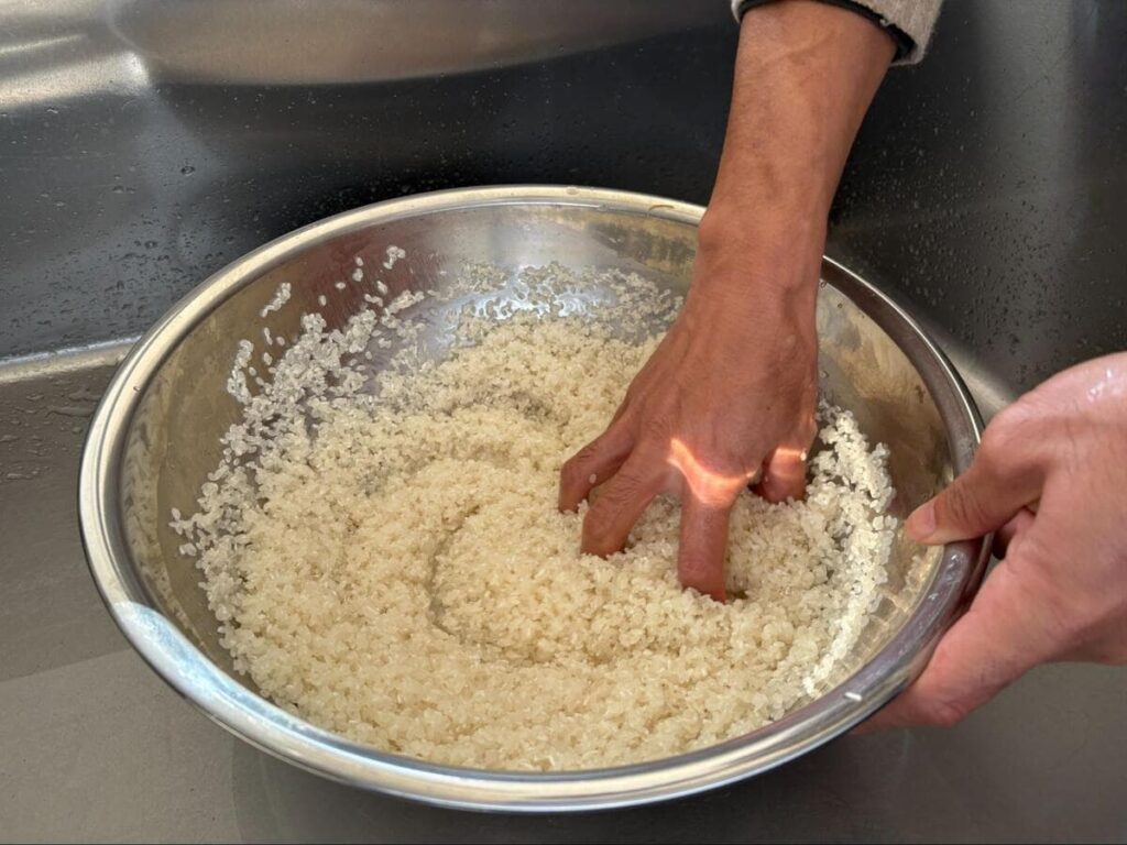 棚田米の研ぎ方や炊飯時間などはすべて統一されていました。これは、調理方法で味や見た目に差が生まれないようにするためとのことです。